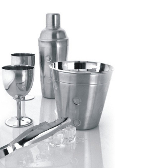 2 pcs Wine Goblet/Ice Bucket (14 X 14 cm)/Regular Cocktail Shaker (750 ml)/Ice Tong