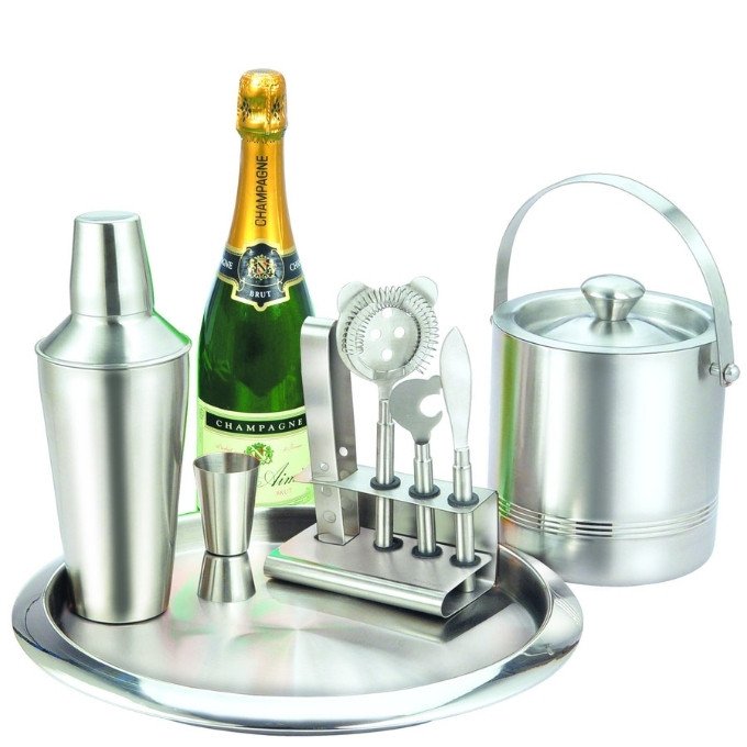 Superb Bar Tray(36 cm)/DW Ice Bucket (15 cm) /Regular Cocktail Shaker (500 ml)/Jigger Cup (30/60 ml)/5 Pcs Bar Tool Set