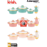 Sizes- 4 Pcs set: Casseroles: 1500/2500/3500 ml, Flask- 1 pc